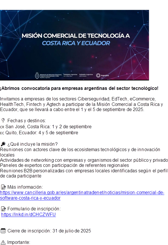 [ COMISION IOT CABASE] nueva convocatoria de cancillería misión comercial de Tecnología