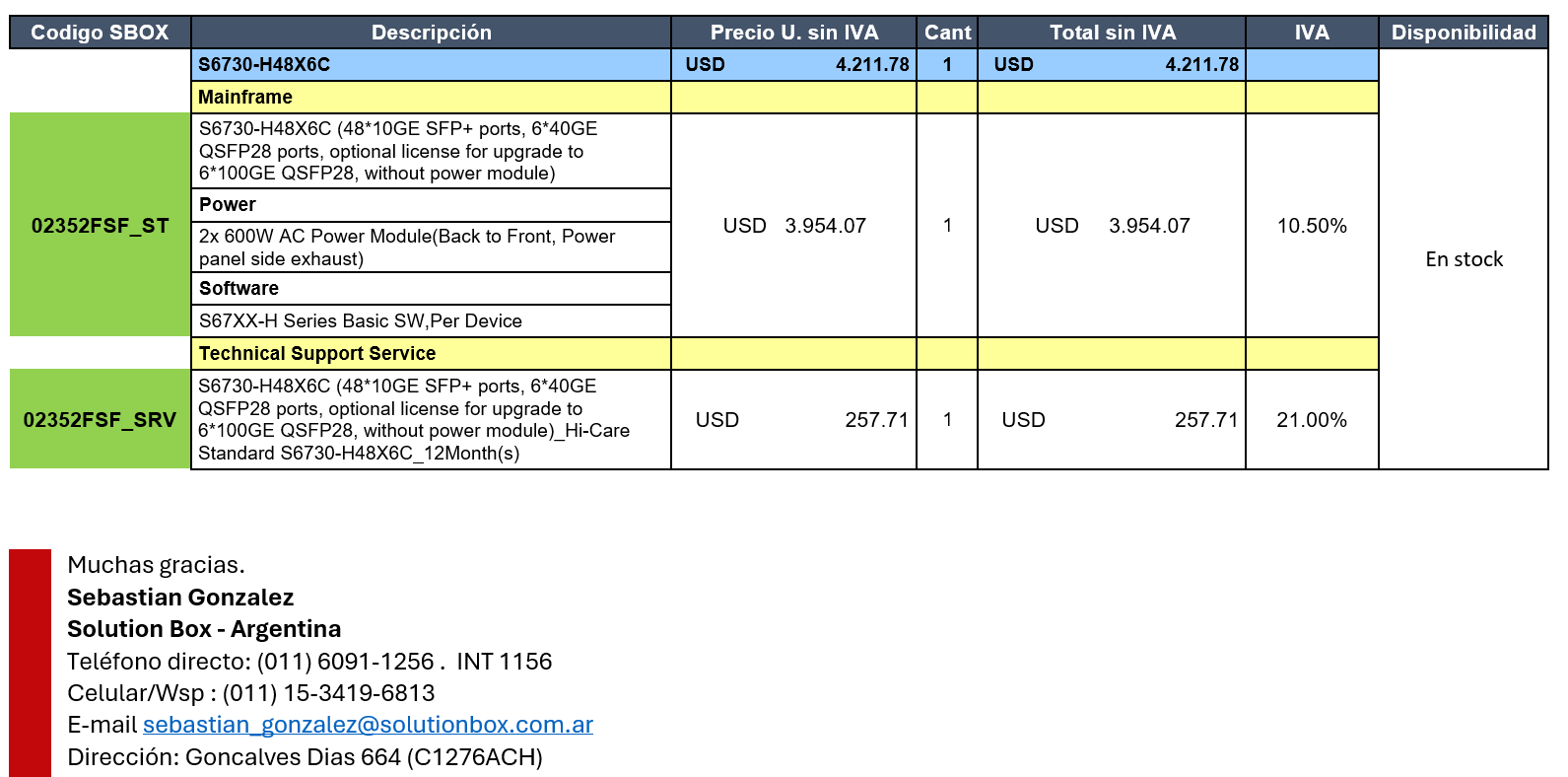 Adjunto abajo encontrarán dos presupuestos de las empresas Solution Box y Horizon-TD. El precio más económico es el de Solution Box, que asciende a 4211.78 dólares + IVA.