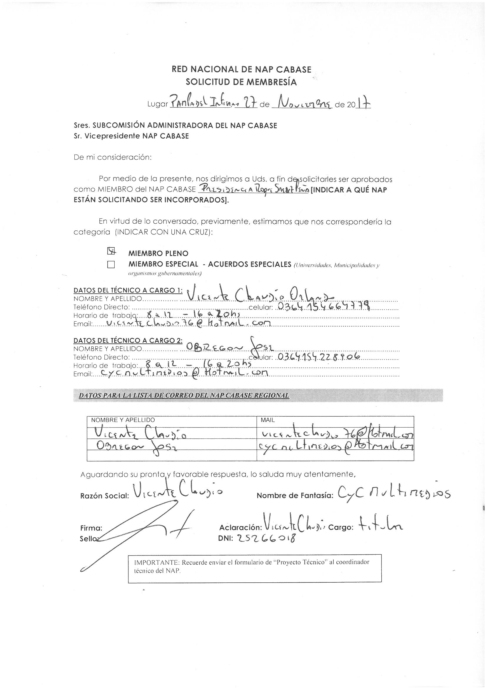[IXP SZP] RV: NUEVOS MIEMBROS PARA INVITAR Y CONSIDERAR :: VICENTE CLAUDIO ORLANDO