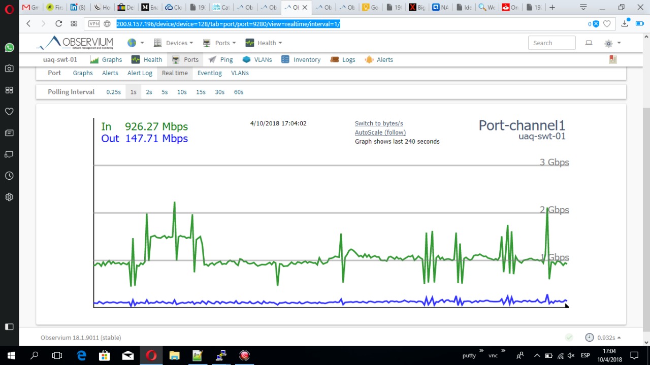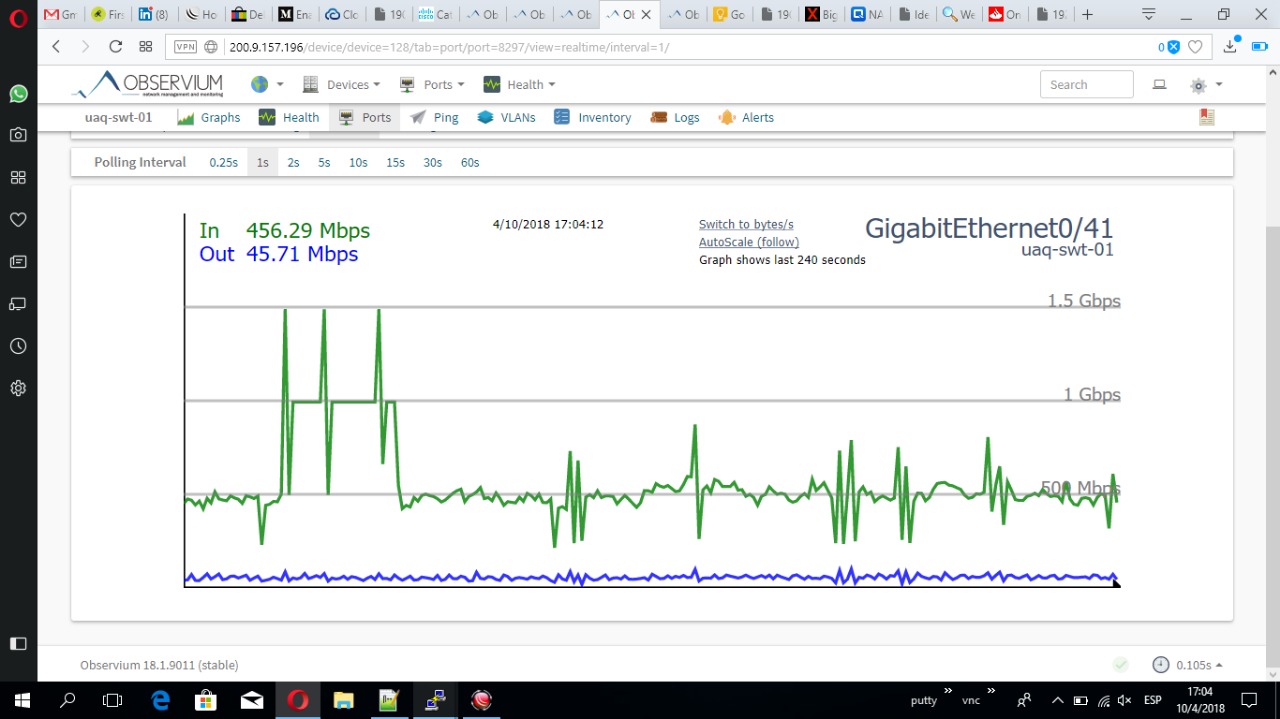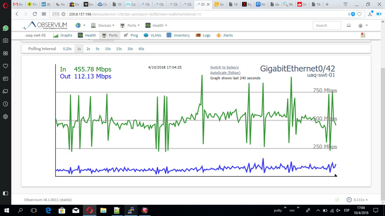 Además adjunto las gráficas de Observium (1 channel port, 2, g0/41, 3 g0/42).