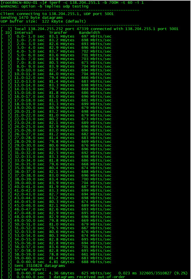 [root en RCN-ROU-01 ~]# iperf -c 138.204.255.1 -b 700M -t 60 -i 1