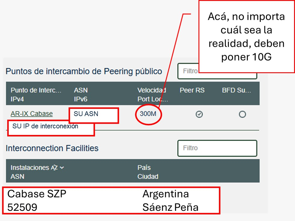 la info en PeeringDB, tal como muestra la foto: (obviamente, donde dice