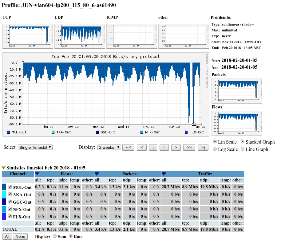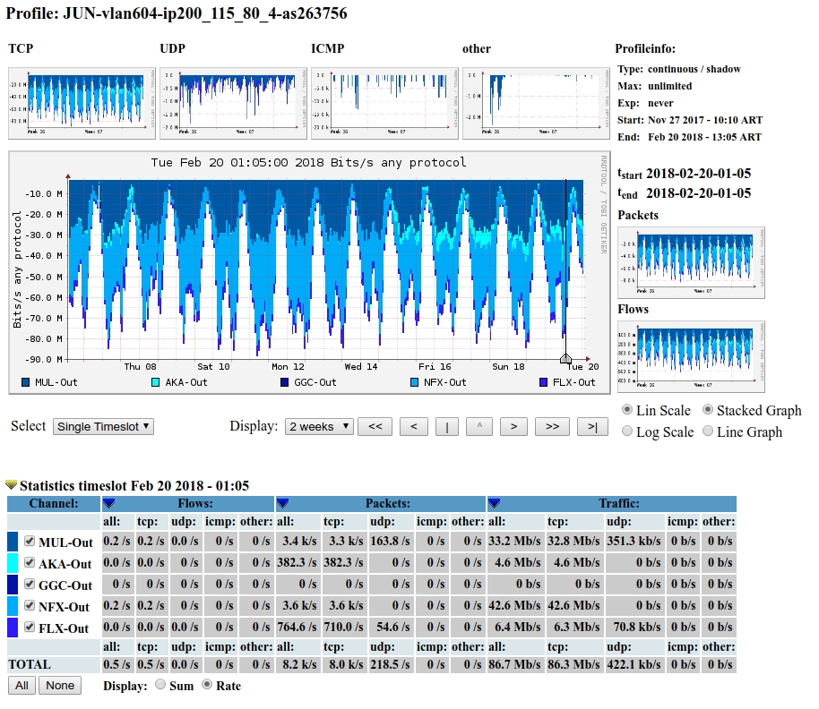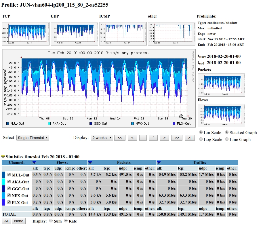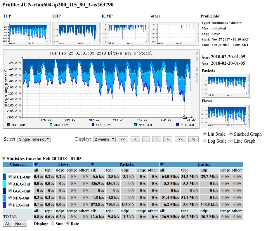 de cada uno de los miembros del IXP desagregado por CDNs.