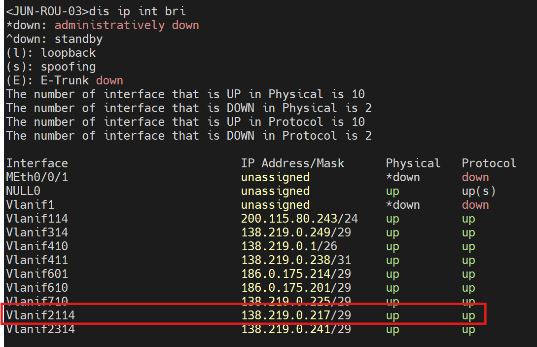 >>> En el Switch JUN-ROU-03 el port XGE0/0/45