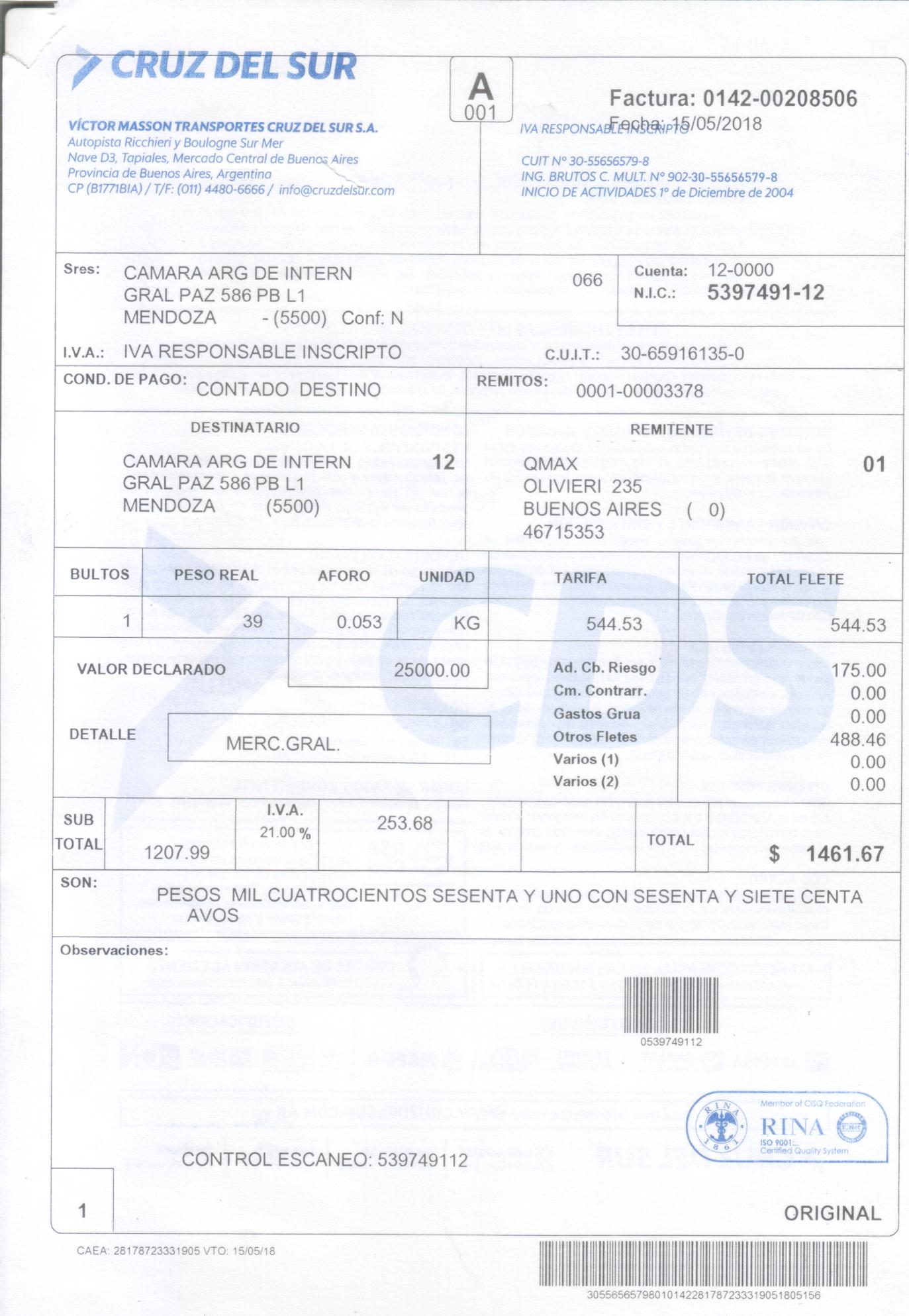 Hola Graciela, llego el equipo QMAX y el flete vino a pagar a destino. Adjunto la factura, decime por favor como hago para el reintegro.