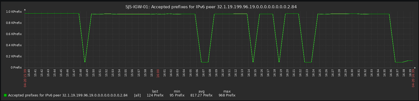 Buenas tardes, tenemos un flapeo en los prefijos recibidos en la sesión
