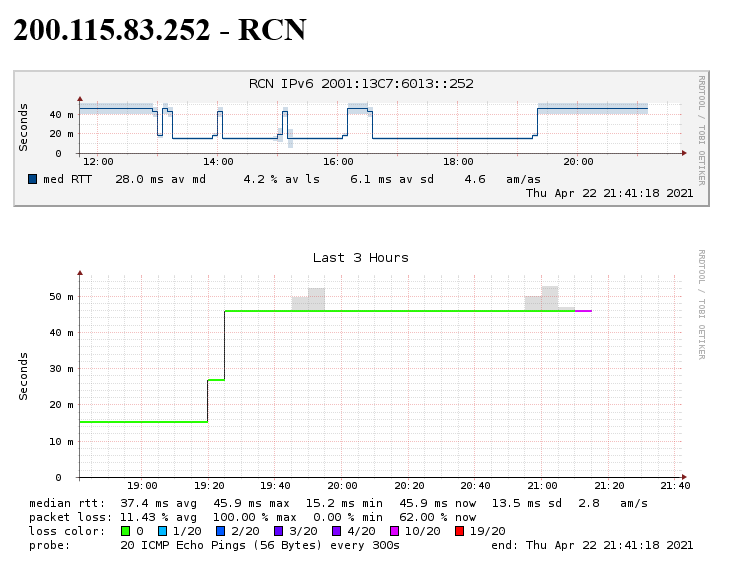 > Estamos experimentando pérdida de paquetes hacia ruteo central,