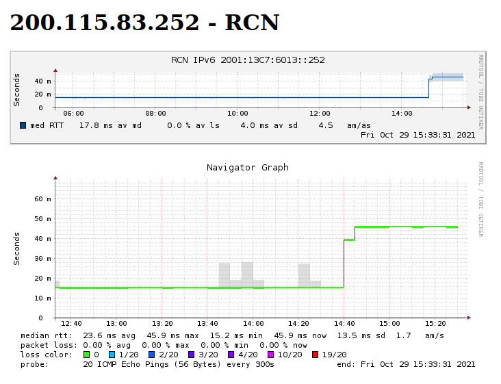 Estamos registrando un aumento de latencia hacia RCN desde las 14:40