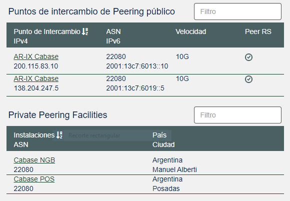 Público (PIPP) en 10G y tiene registrado el IXP-POS en Private Peering