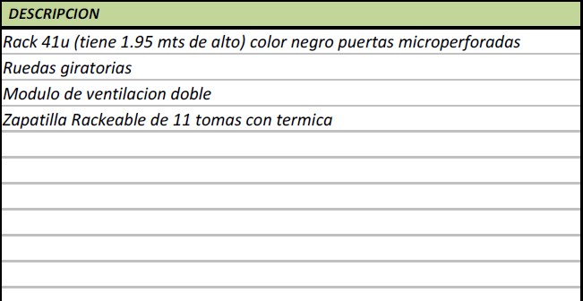 Respecto del Rack habria que recotizarlo, se lo podemos facturar hay que consultar una cotización actual del precio a un proveedor para estimar el valor ahora.
